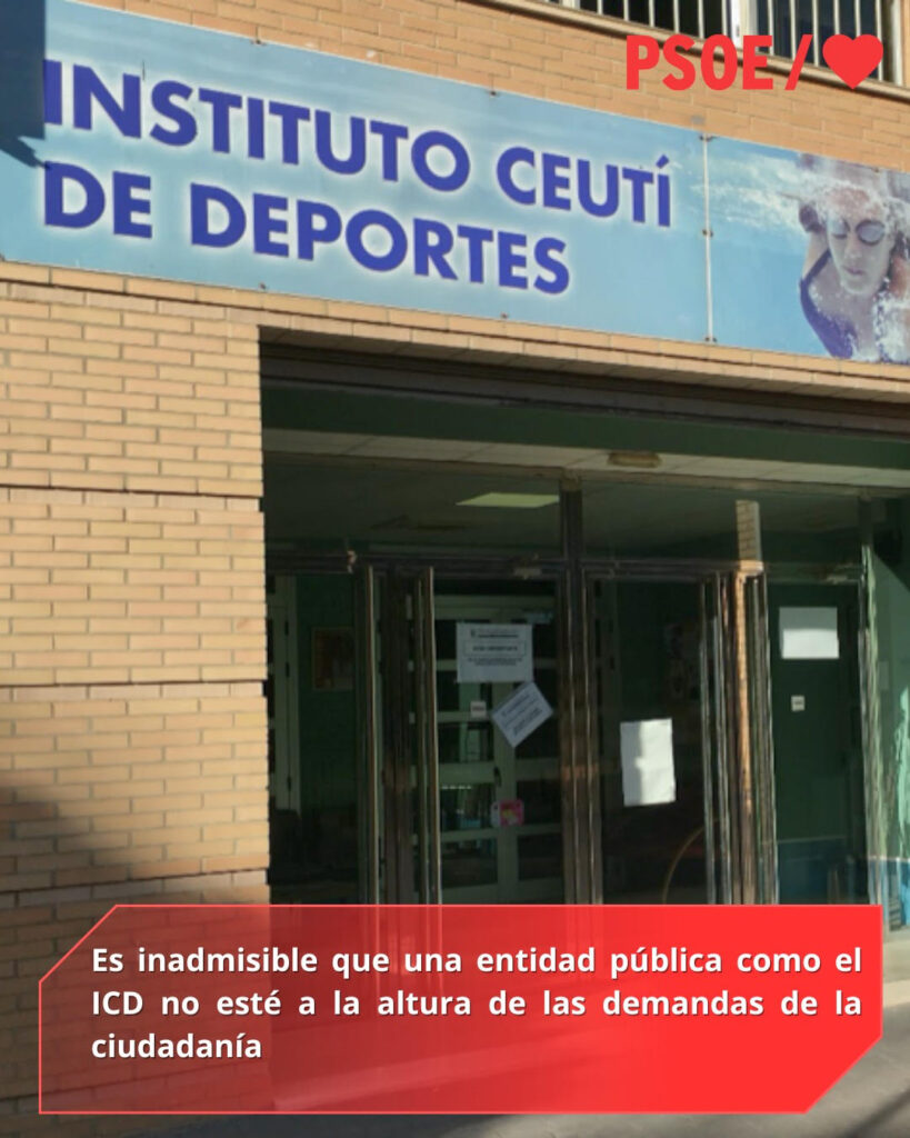 El PSOE de Ceuta denuncia públicamente “la situación de abandono que sufre el Instituto Ceutí de Deportes (ICD), una entidad pública que debería estar al servicio de la ciudadanía pero que, año tras año, acumula quejas sin que el Gobierno de Vivas ofrezca respuesta alguna”.