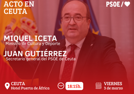 El ministro de Cultura y Deporte participará en un acto organizado por el PSOE que tendrá lugar el viernes 3 de marzo, a las 18:15 horas, en el Hotel Puerta de África…