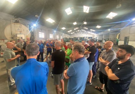 El PSOE se ha reúnido con la plantilla del servicio de autobuses urbanos para mostrarle, una vez más, su total apoyo y anunciarle que respaldarán la gestión directa del servicio por parte de la Ciudad.