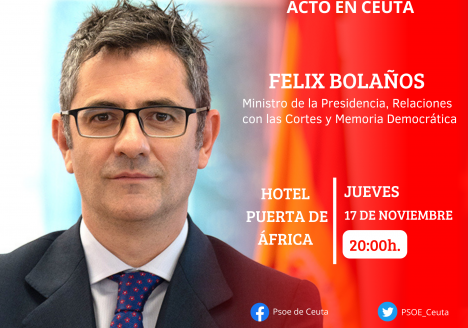 Félix Bolaños protagonizará un acto público del PSOE este jueves en Ceuta